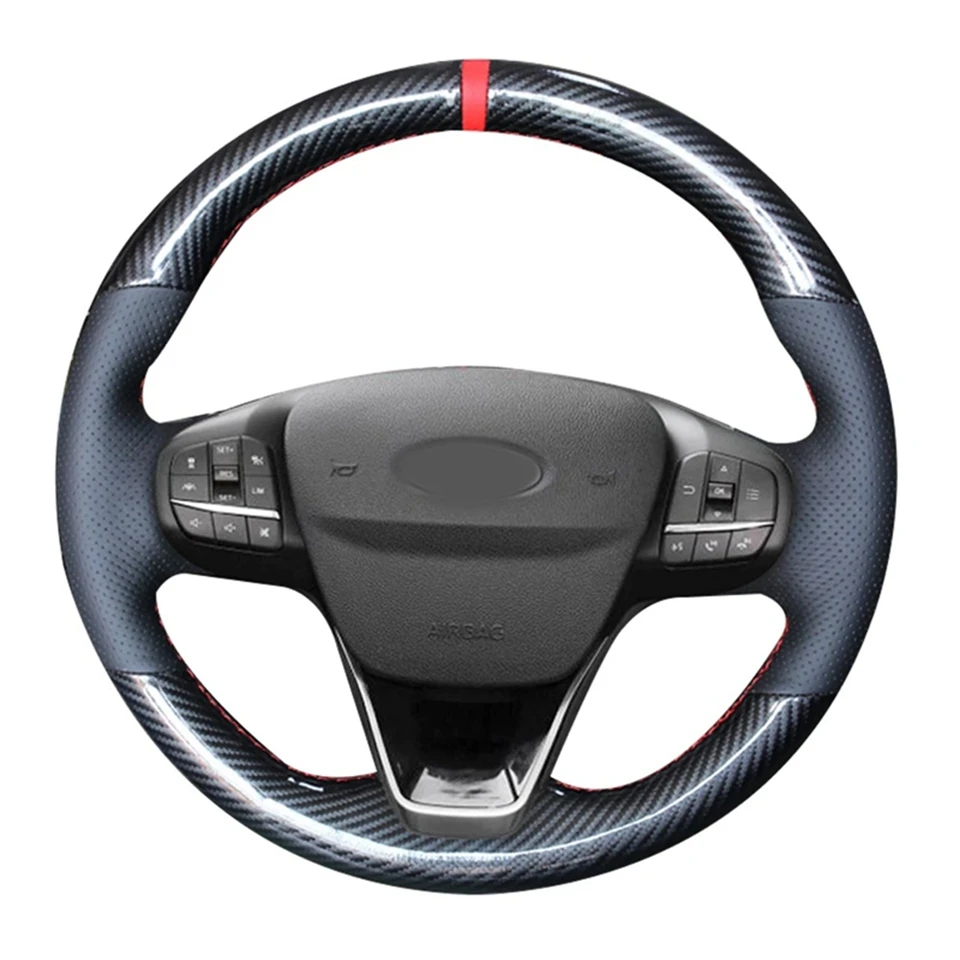 Черный углеродного волокна Кожаный чехол рулевого колеса автомобиля для Ford Focus 4 побег 2019 2020 Fiesta Tourneo 2018-2020 эскорт Пума
