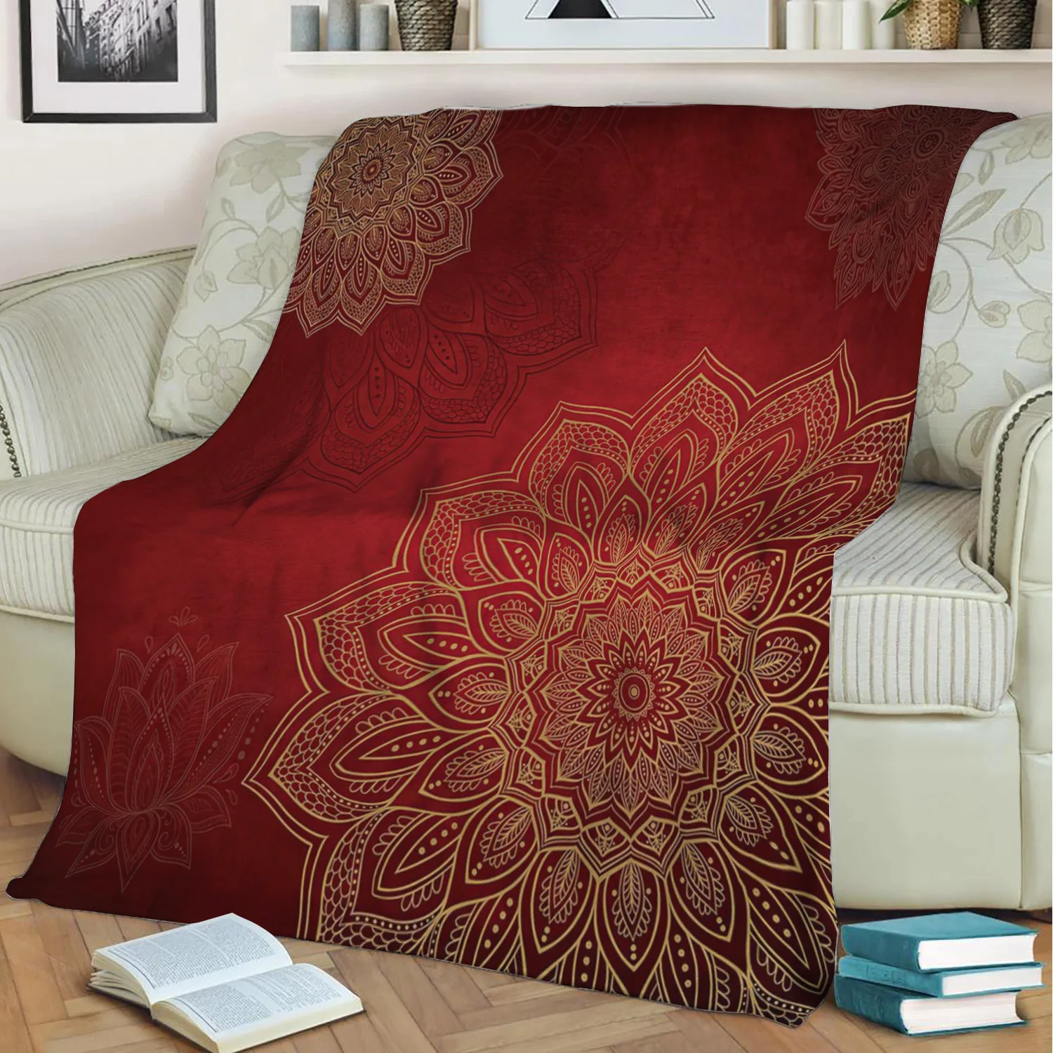 Золотая Мандала в богемном стиле с золотисто-красный 3D печатных Shabal одеяла мягкие теплые моющиеся и пледы на диван-кровать для домашнего декора