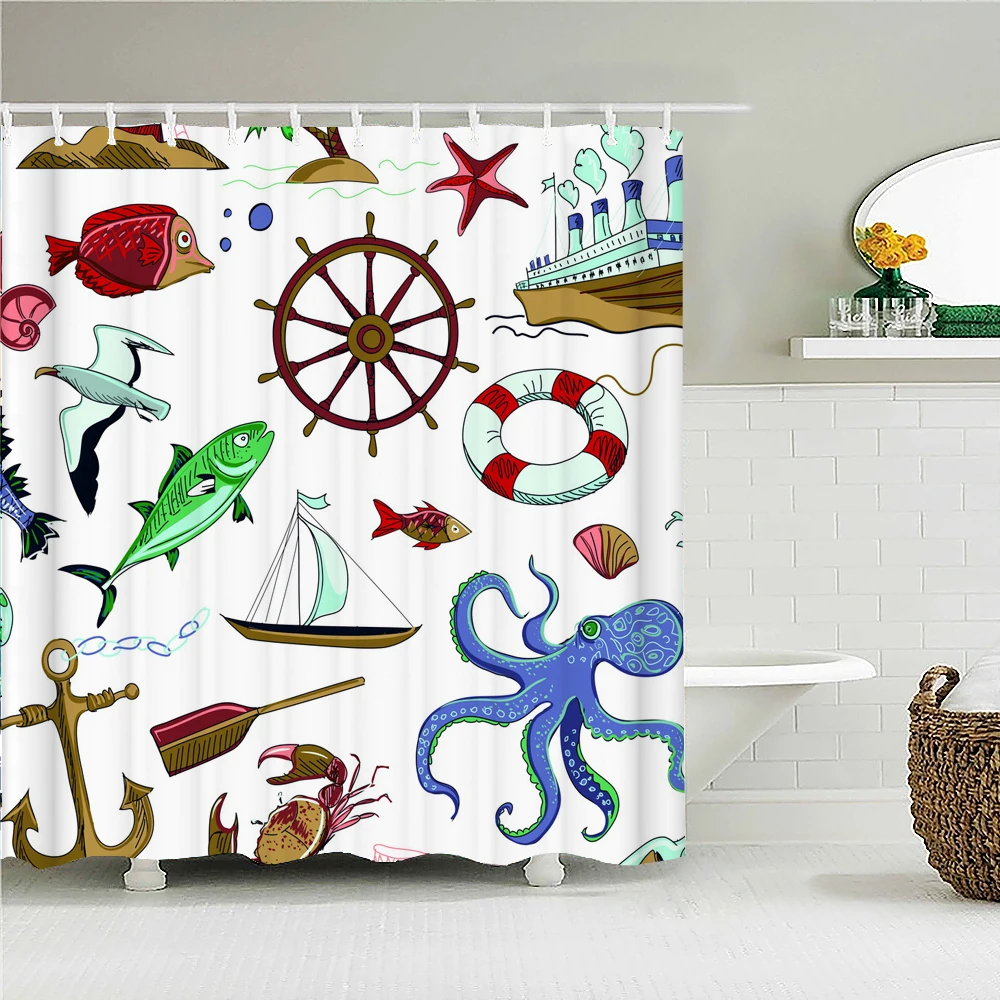Морская черепаха, рыба, осьминог, водонепроницаемая занавеска для душа, ванная комната, занавеска для ванной, s 240X180 см, 3D принт, мультяшная душевая занавеска, занавеска