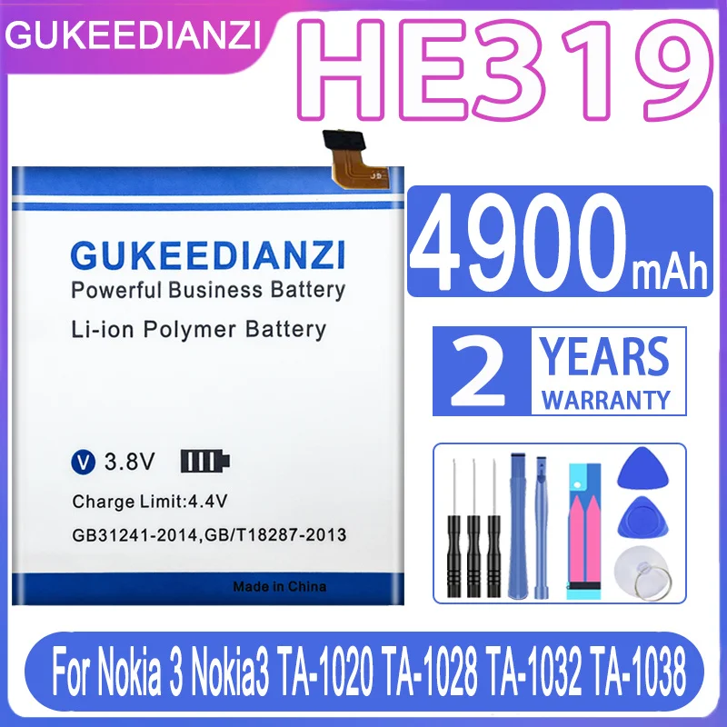 Аккумулятор для мобильного телефона GUKEEDIANZI HE319 для Nokia 3 Nokia3 TA-1020 для Nokia 2 TA-1020 3 TA-1000 5 6 7 7 Plus 8 Sirocco 8 TA-1004 аккумуляторные батареи
