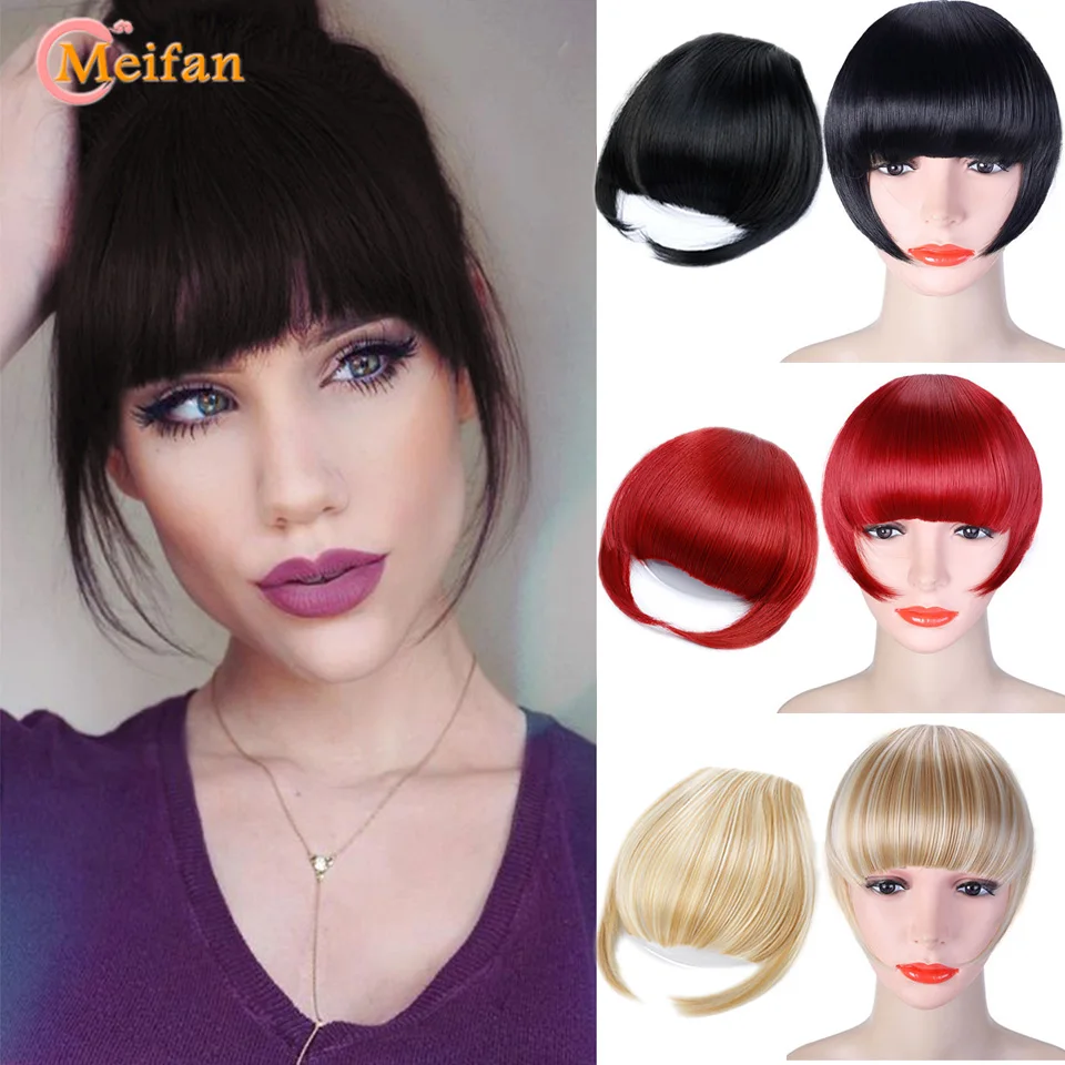 Накладные волосы MEIFAN, короткие, с бахромой, с зажимом спереди, для женщин