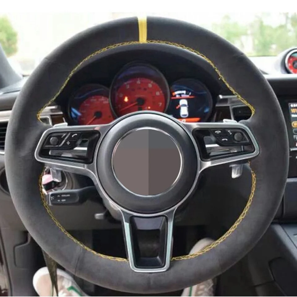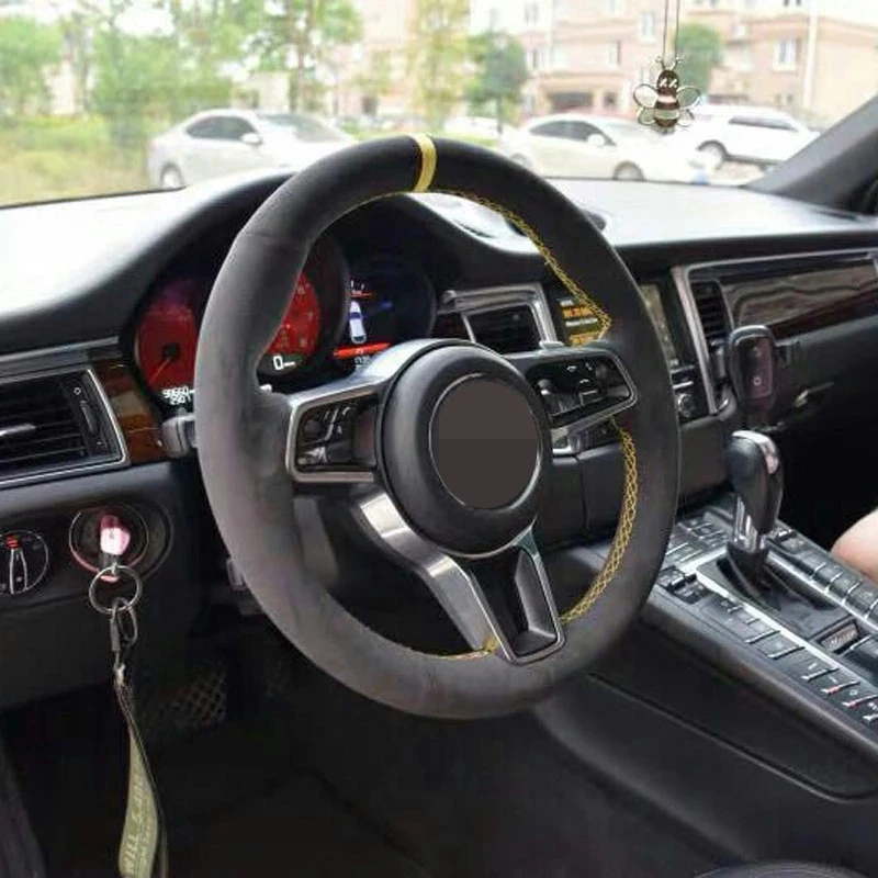 Ручная сшивка мягкий "сделай сам", из натуральной кожи и замши чехол рулевого колеса автомобиля для Porsche Macan Boxter Cayenne 2015-2016
