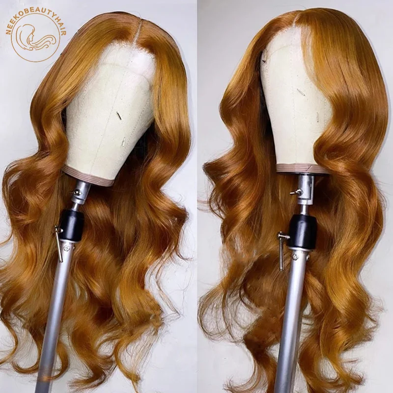 Парики из натуральных волос, прозрачные, оранжевые, Имбирные волнистые, 13X4, плотность 180%, бразильские