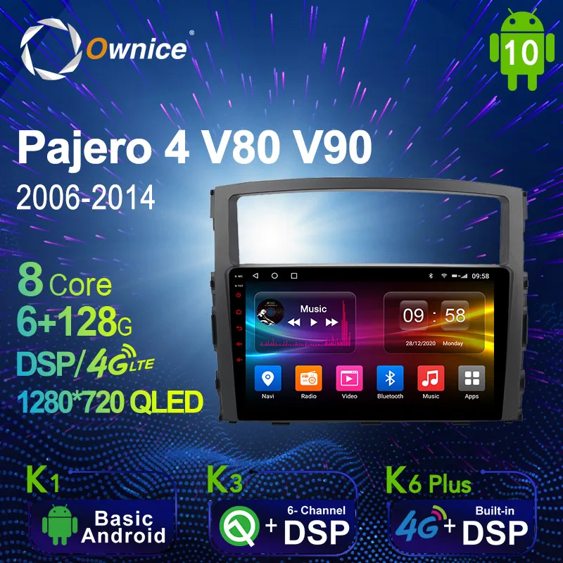 Автомагнитола Ownice на Android 128, 6 + 10,0 ГБ, для Mitsubishi Pajero 4, V80, V90, 4G, LTE, SPDIF