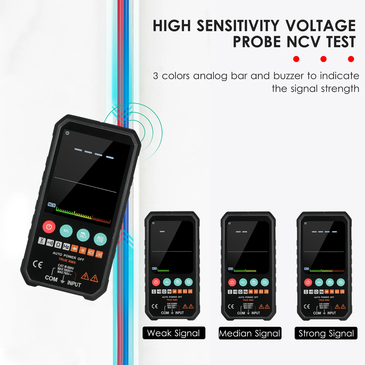 NCV тест: Высокая чувствительность измерения напряжения зонда, 3 цвета аналоговый бар и зуммер, чтобы указать силу сигнала.