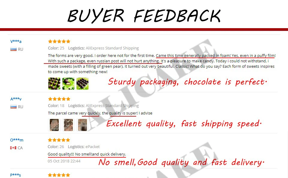 1. Используйте пищевые пластмассы, которые соответствуют FDA и SGS.2. Наши формы тяжелее, толще, прочнее и имеют более длительный срок службы! 3.отсутствие вредных веществ, обеспечение безопасности и здоровья! 4.мы обеспечиваем бесплатную доставку во многие страны! 5.наша поверхность формы гладкая и не подвержена царапинам.