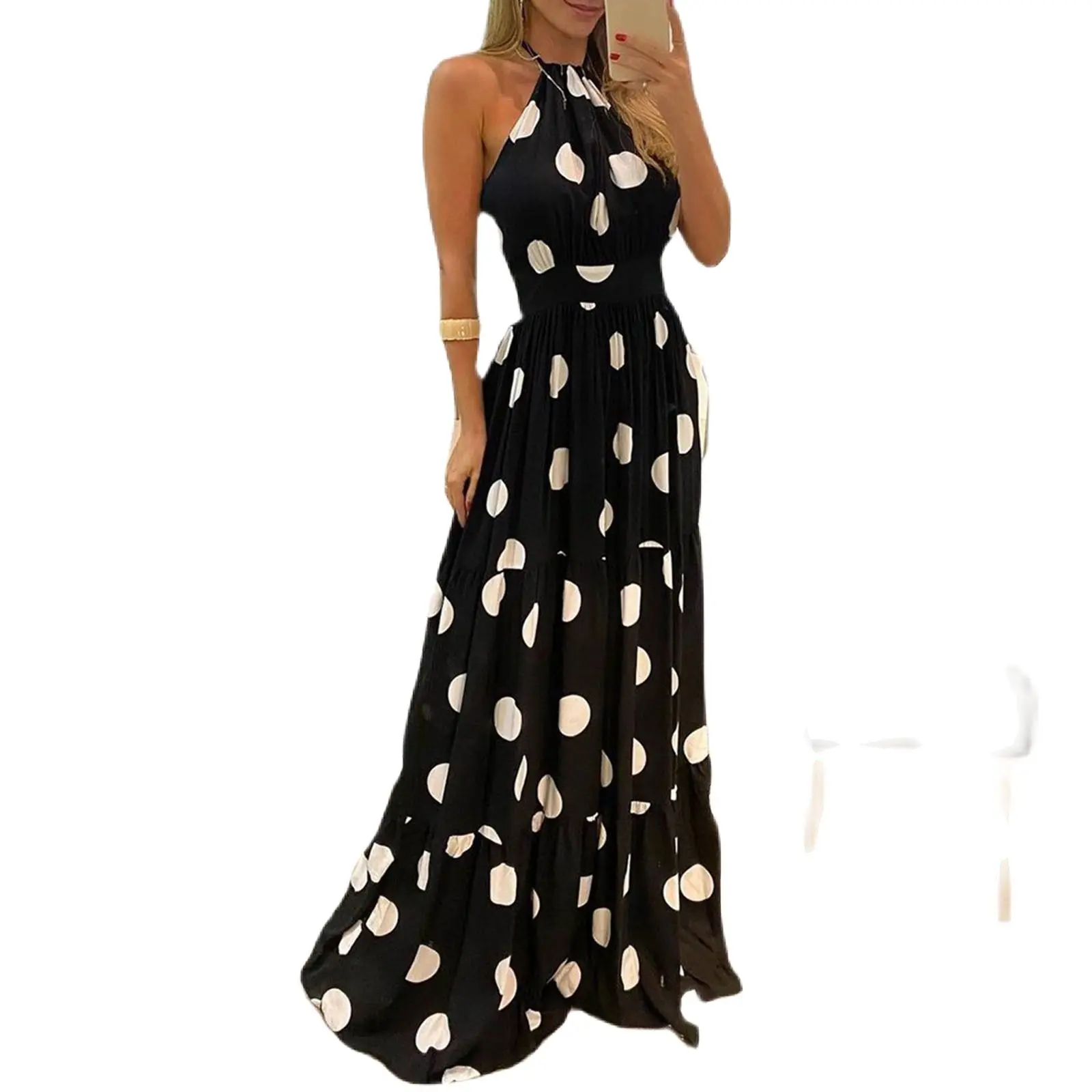 Женское богемное платье-макси, повседневное свободное комбинированное платье на бретелях, с цифровым принтом, без рукавов, лето 2021
