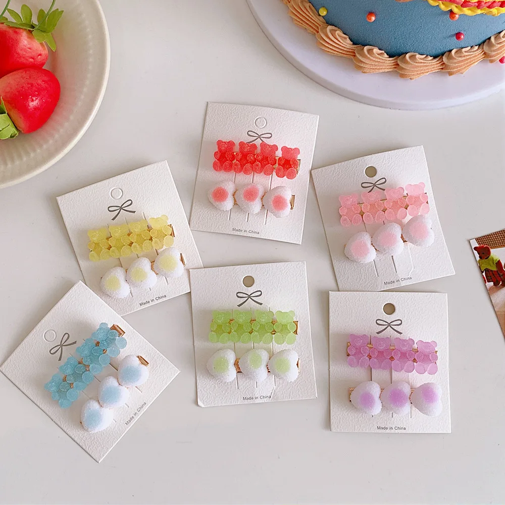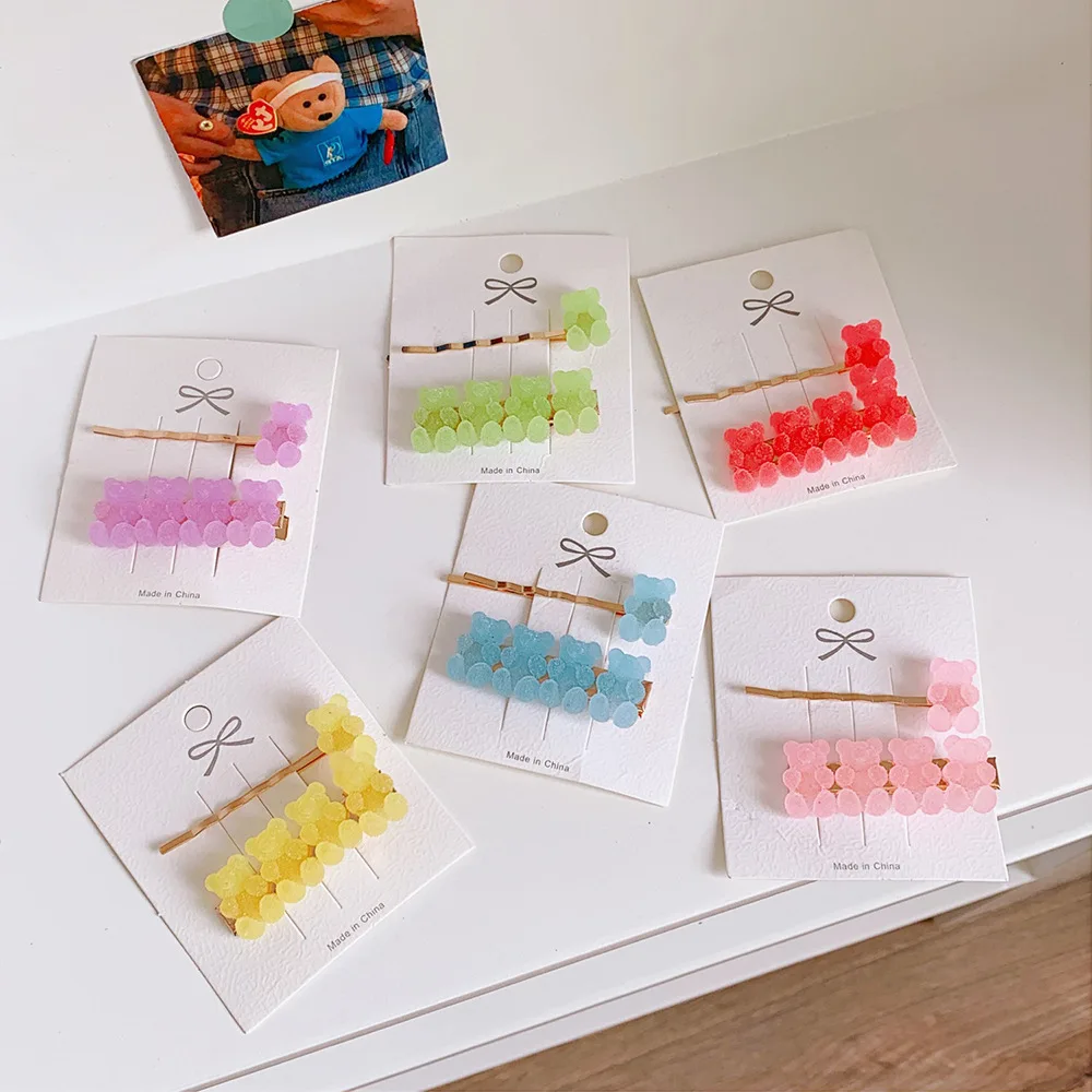 Заколки для волос в стиле Харадзюку для женщин и девочек, милые резиновые зажимы-желе с медведем, милые аксессуары для волос, 2 шт.компл.
