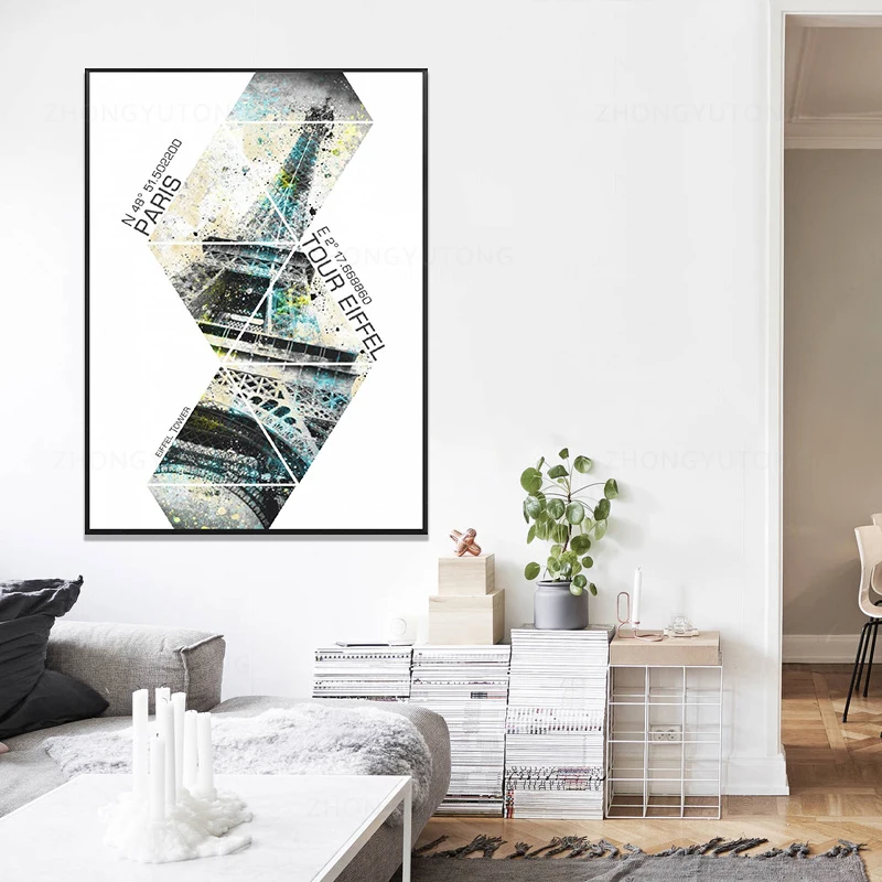 Абстрактные координаты Эйфелева башня Картина на холсте настенное Искусство Картины домашний Декор настенный плакат для декора для гостиной