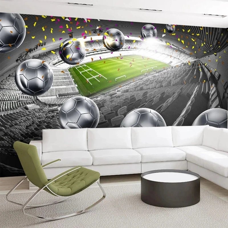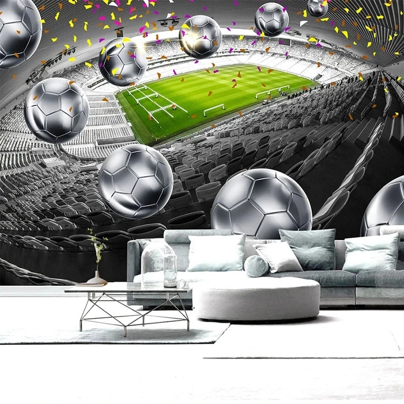 3D фрески на заказ, HD футбольное поле, Серебряный Футбол, искусство, самоклеящиеся обои, гостиная, ресторан, фон, Декор, живопись