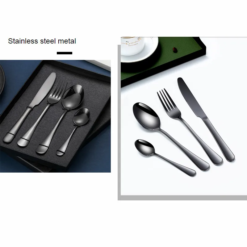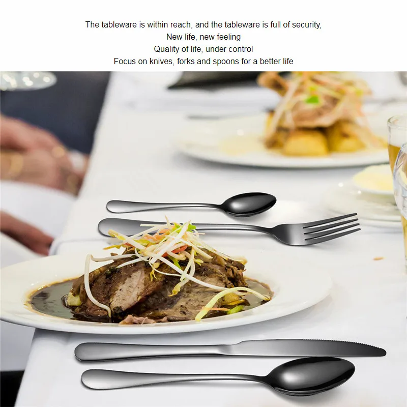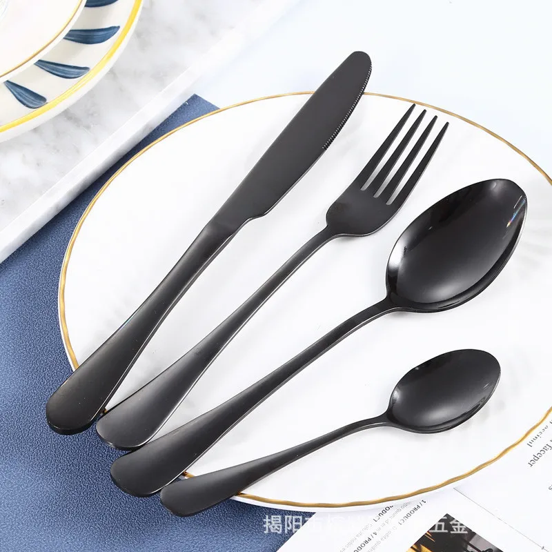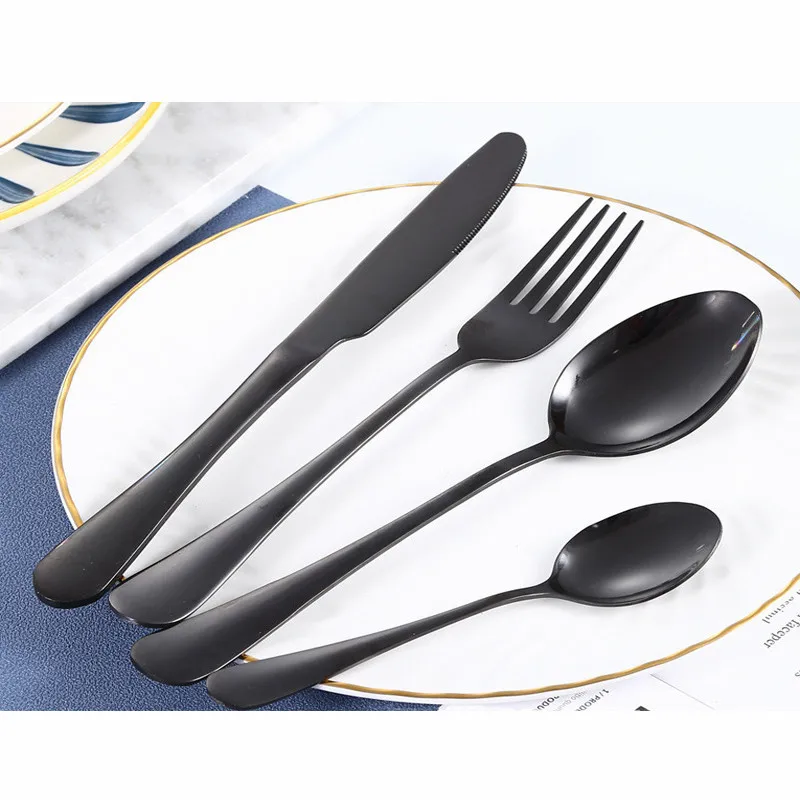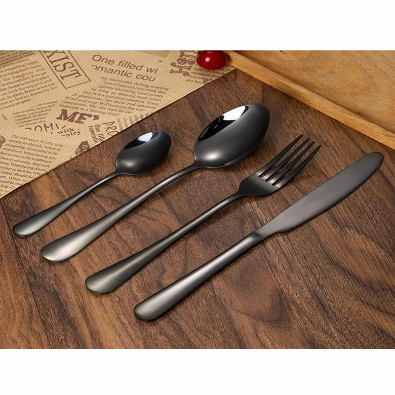 Черная кухонная посуда, набор столовых приборов из нержавеющей стали, набор черной посуды, ложка, вилка, нож, 24 предмета, столовая посуда золотого цвета