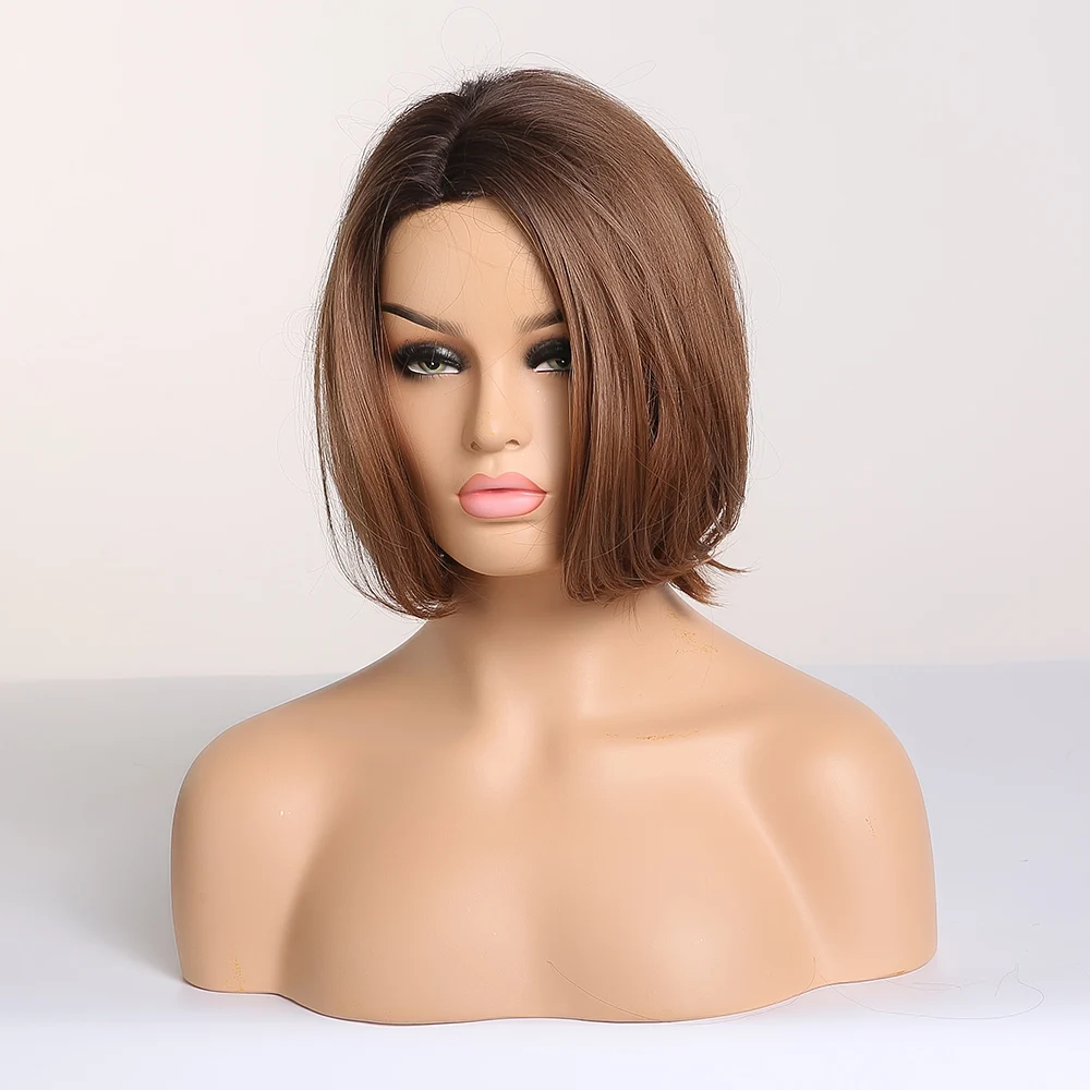 Синтетический короткий прямой парик с эффектом омбре GEMMA черно-коричневый парик с естественным внешним видом с боковой частью термостойкий парик для черных женщин