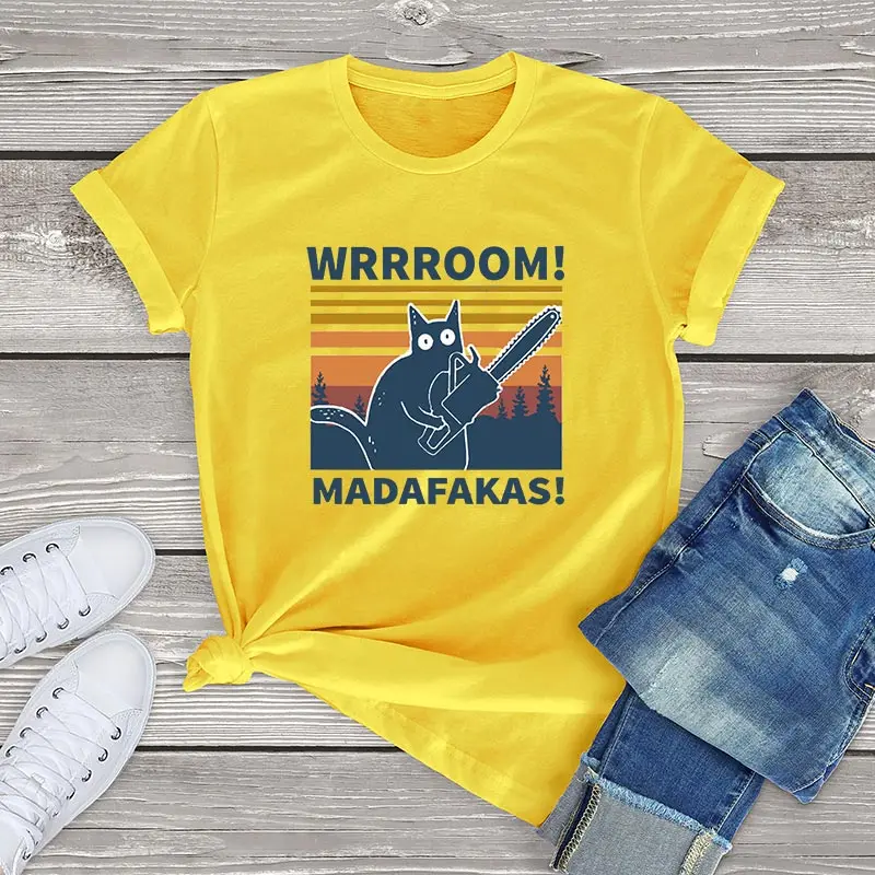 Kawaii, черная футболка с котом, Wrrroom Madafakas, женская одежда, забавная футболка с котом, женские рубашки, унисекс, хлопковые Модные женские топы, мужские модные футболки, большие размеры, уличная одежда, 3xl