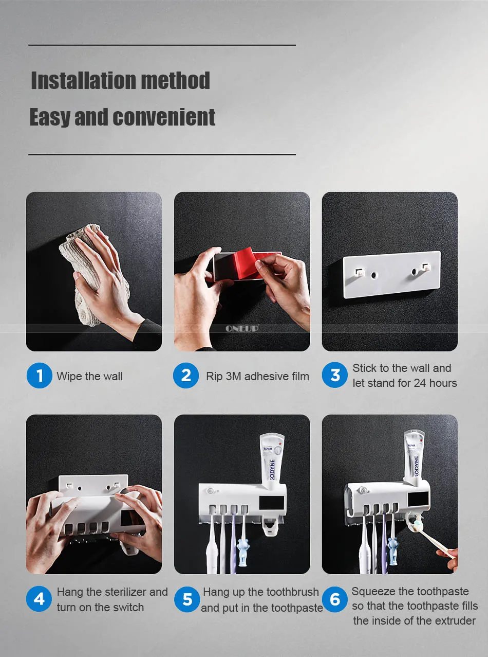 Ванная комната Зубная щетка держатель стерилизатор ультрафиолетовая стерилизация стены всасывания стены Многофункциональный стеллаж для хранения