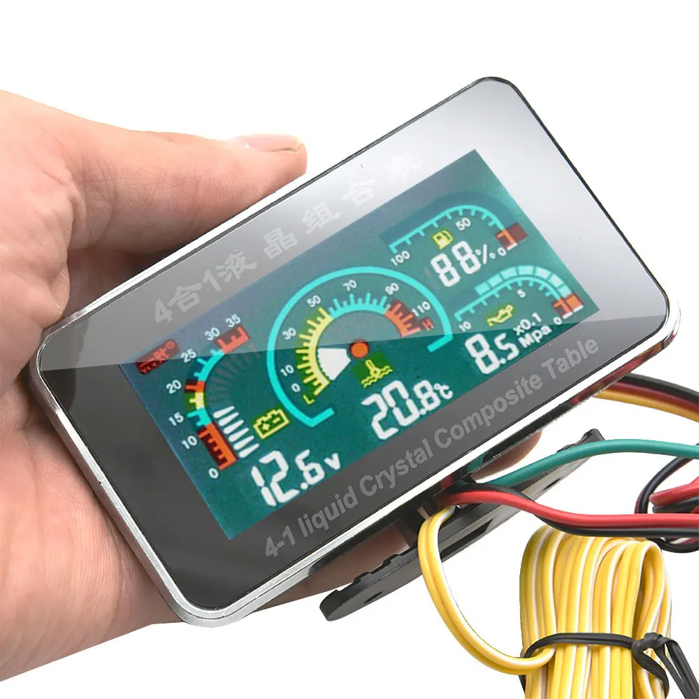 4 в 1 ЖК-дисплей Автомобильный цифровой датчик давления масла вольтметр давление масла Температура воды метр 1/8 NPT датчик давления масла 10 мм 12-24 В