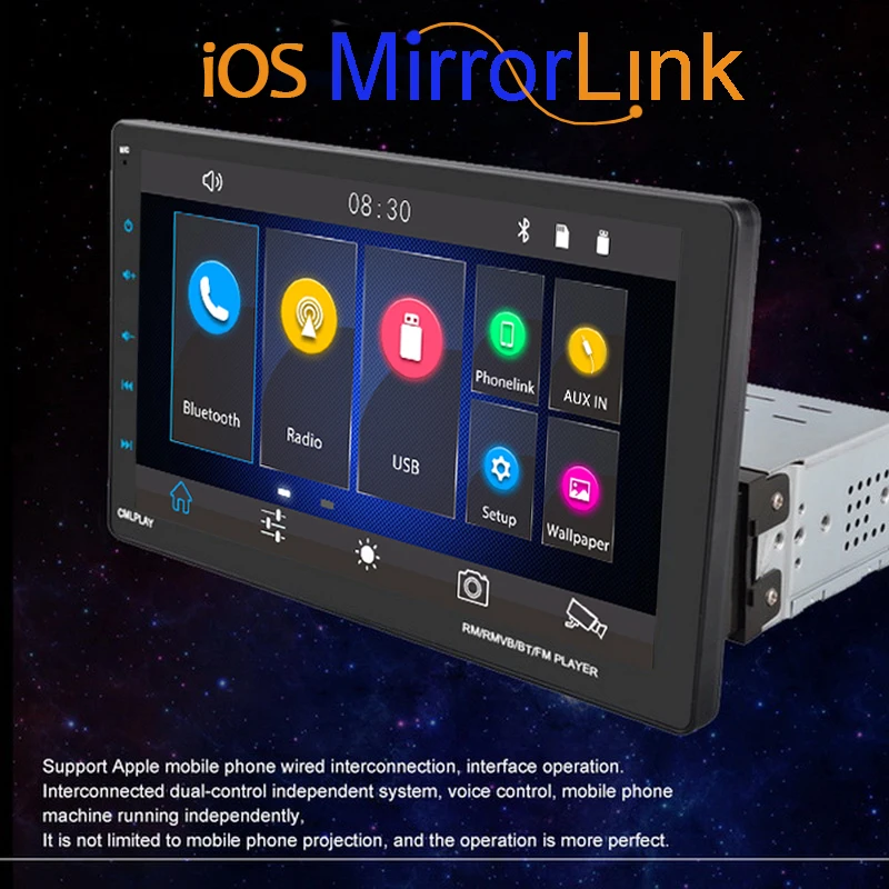Автомобильный радиоприемник 1 Din, 9 дюймов, Bluetooth, автомобильный радиоприемник для AndroidIOS, Apple Caplay, полноэкранный вид, mp5-плеер, зеркальный сетевой рекордер