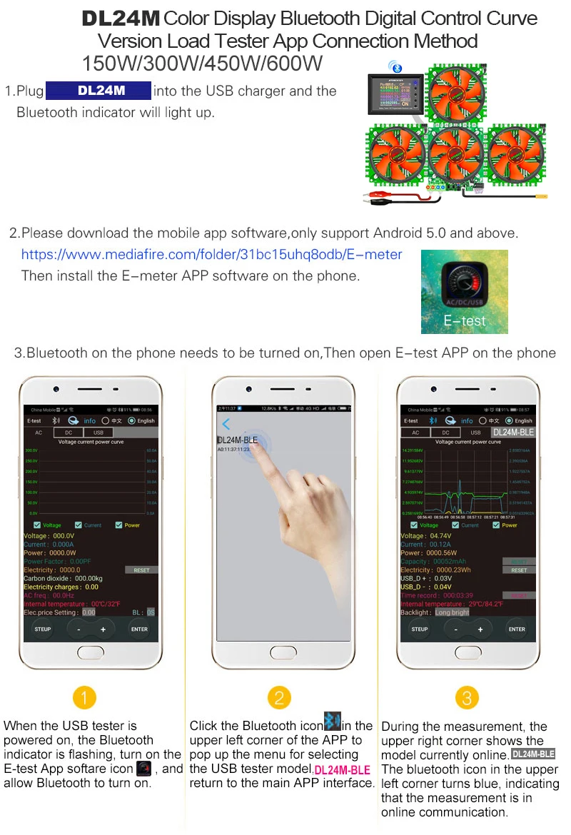 Тестер работает правильно с помощью прикрепленного экрана с кнопками. Он был в состоянии проверить 15а нагрузки с 40V батареями. Приложение Android довольно непригодно для использования. Он может подключаться к bluetooth, с довольно нестабильным подключением. Он может имитировать некоторые кнопки экранного пресса. Он был застревает в режиме тестирования переменного тока, но тестер поддерживает только тестирование постоянного тока.