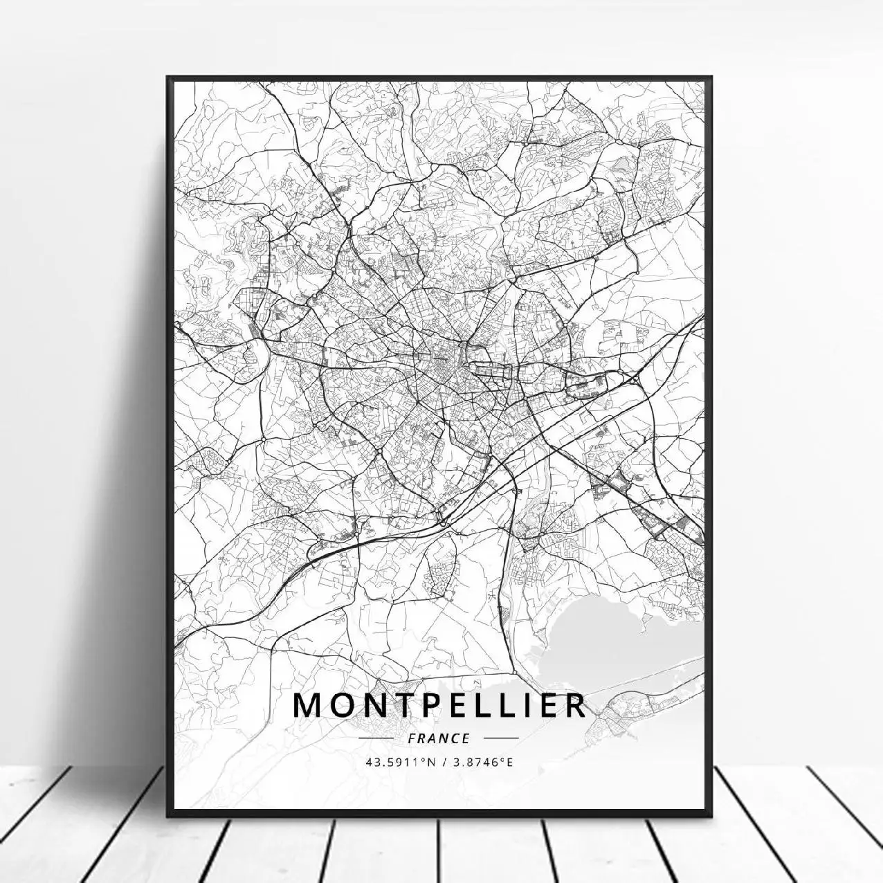 Поатье, Авиньон, Тулон, аннемаса, канны, Монпелье, туры, Франция, холст, художественная карта, плакат, домашний декор