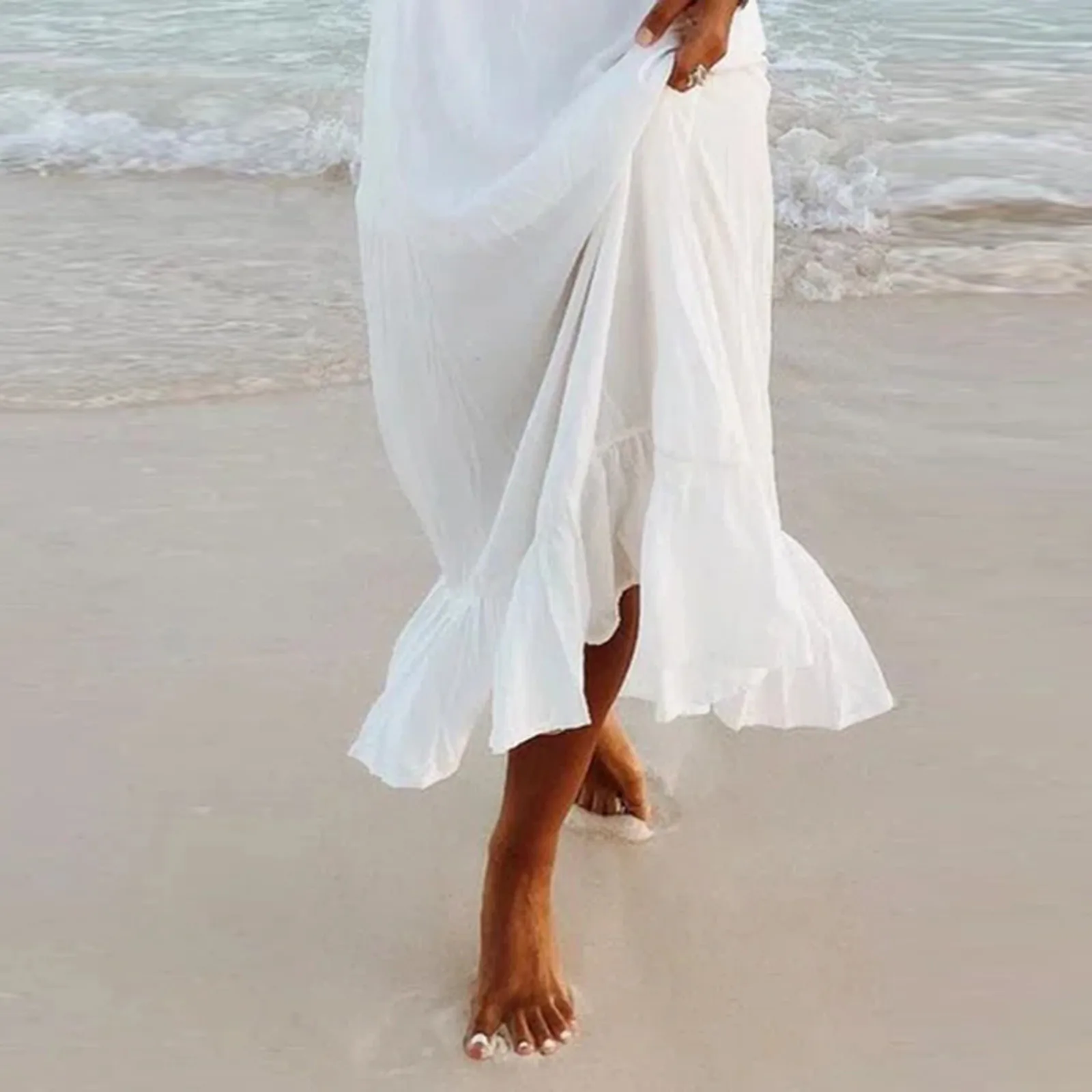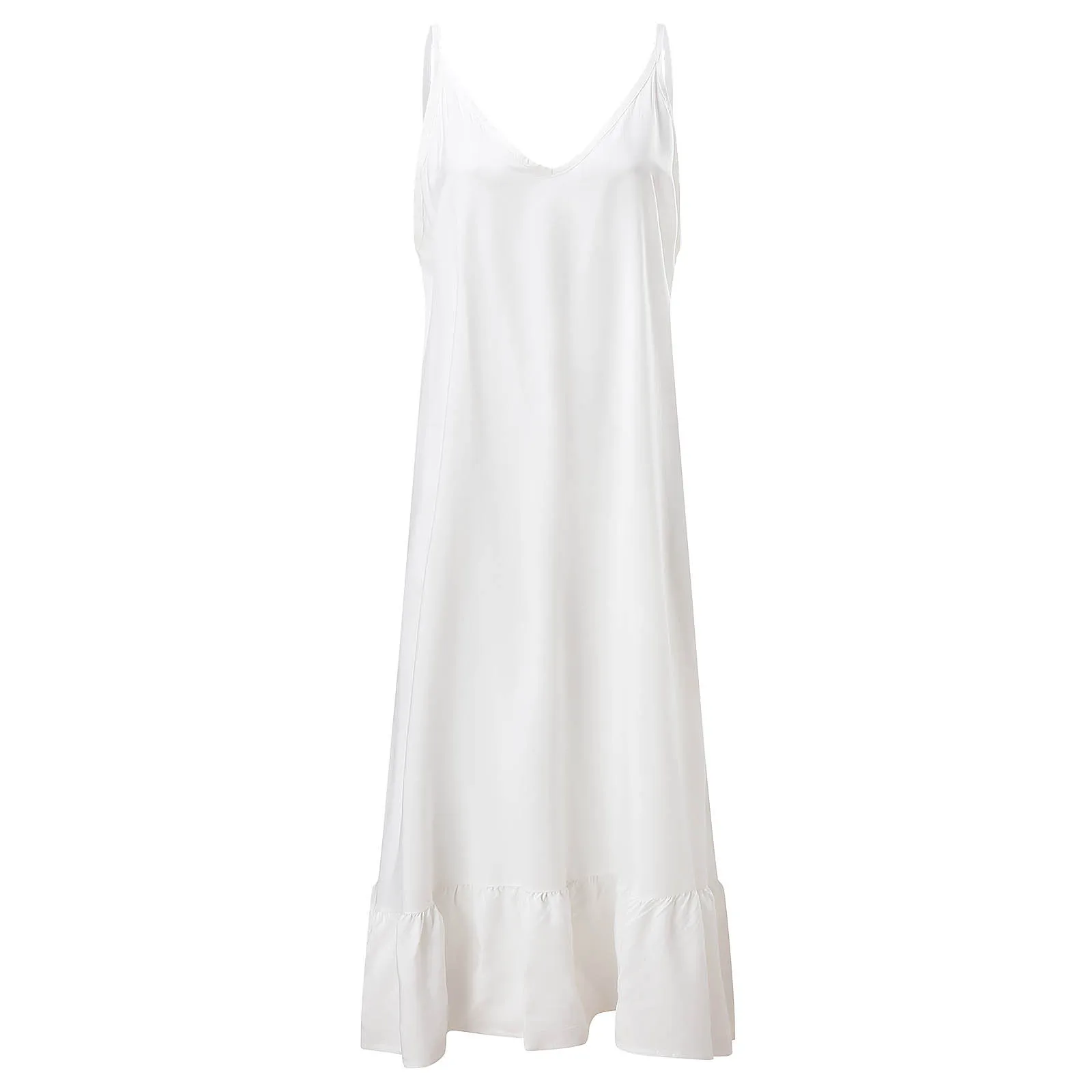 Женское платье макси без бретелек, с V-образным вырезом, без рукавов, повседневное, свободное, длинное, белое, сарафан с рюшами, лето 2021