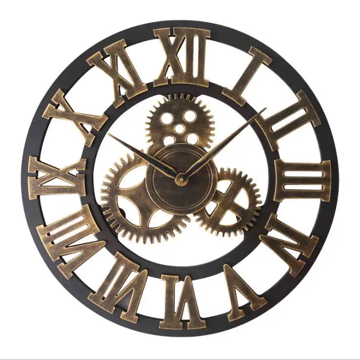 Винтажные деревянные настенные часы в стиле индастриал, большие классические домашние часы в европейском стиле с римскими цифрами для гостиной