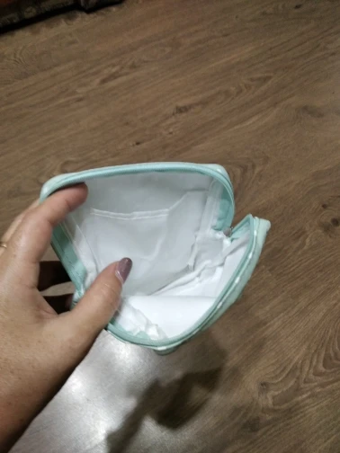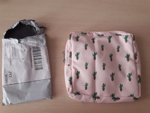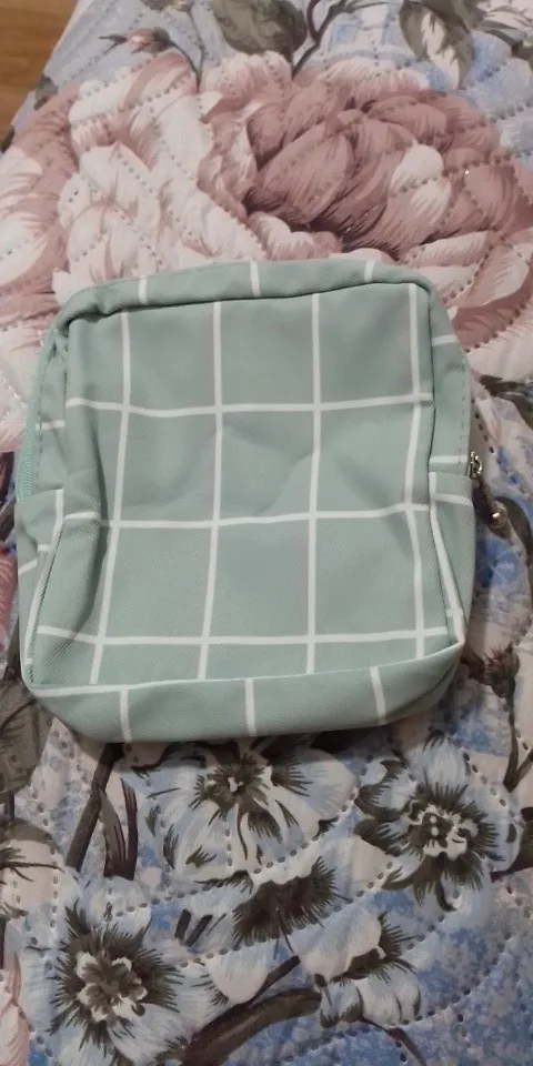 Продукт довольно тонкий, но намного больше, чем ожидалось, я купил 5 этих мешочков, и только розовый цвет имеет небольшую проблему. Он не расстегивается, не застревает, поэтому я думаю, что получил неисправный товар. Скажите, что он может поместиться в санитарные полотенца, если все размеры. Не связался с продавцом.