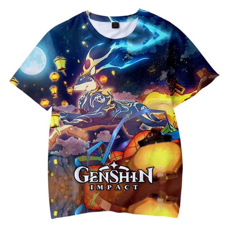 Новая футболка с аниме-играми, уличная одежда с 3D принтом Genshin ...