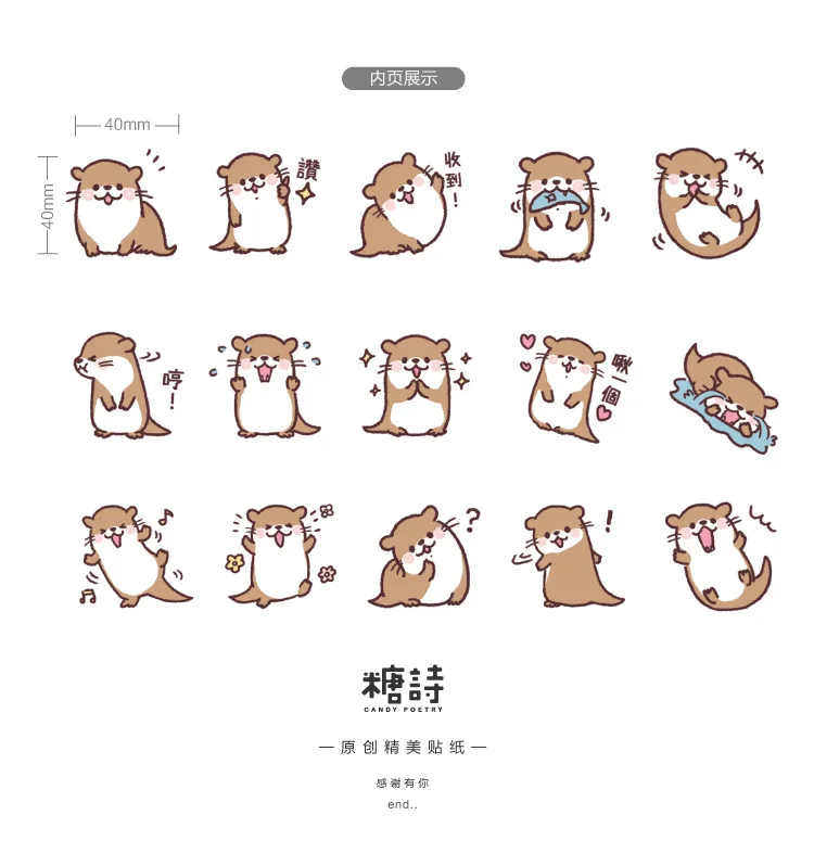 45 шт.Упаковка 15 дизайнов милые Kawaii Otter бумажные наклейки бло...