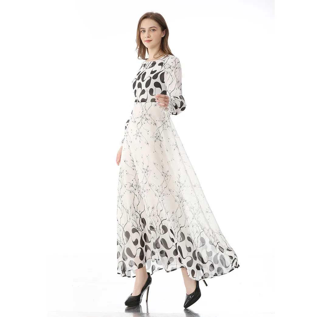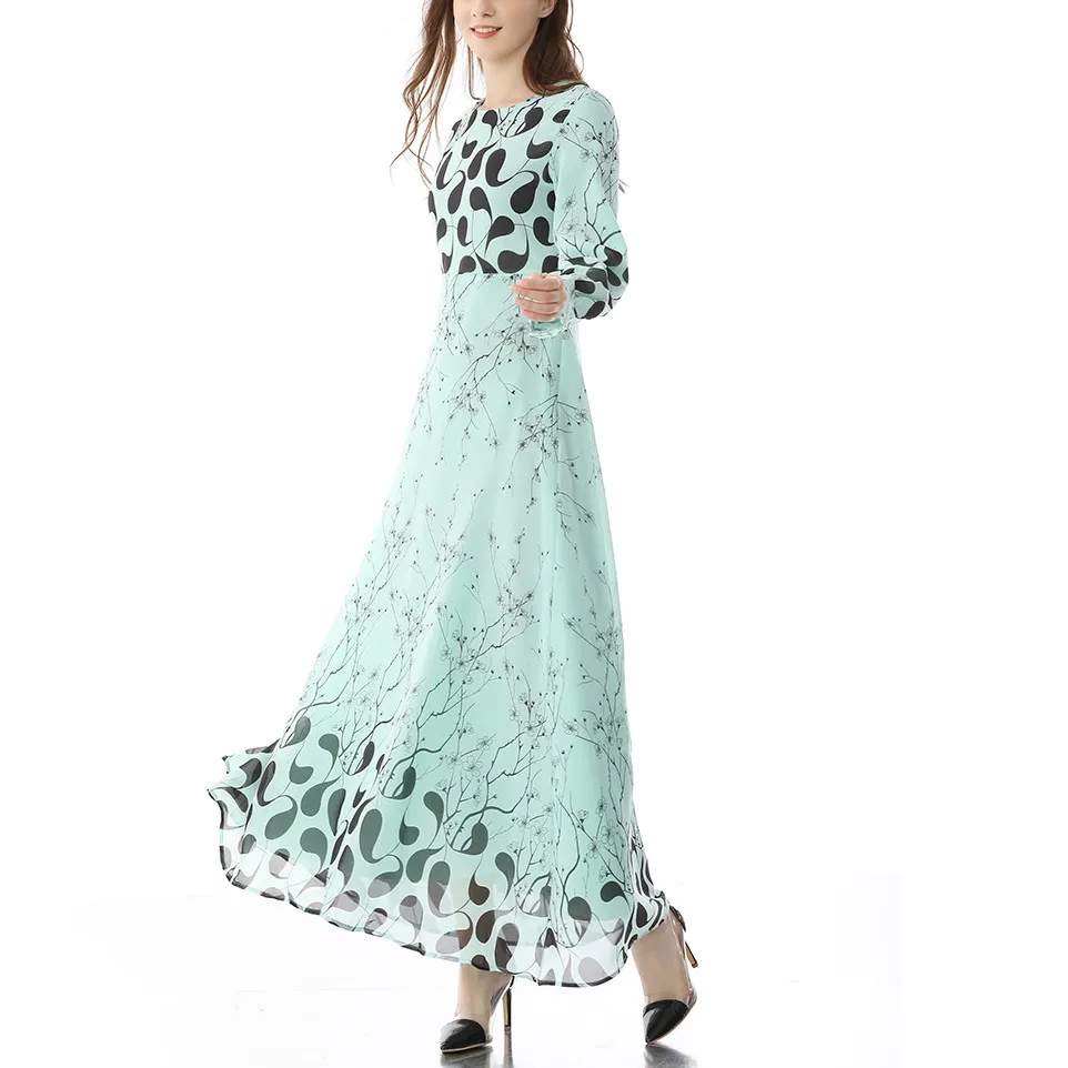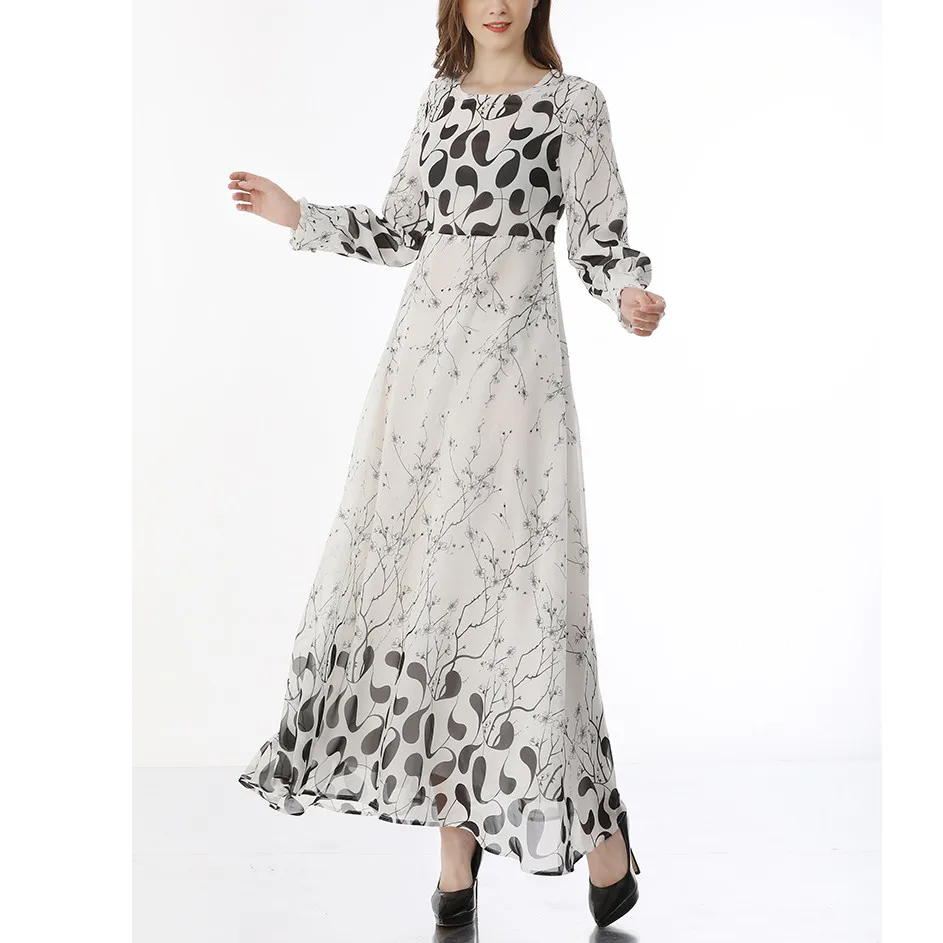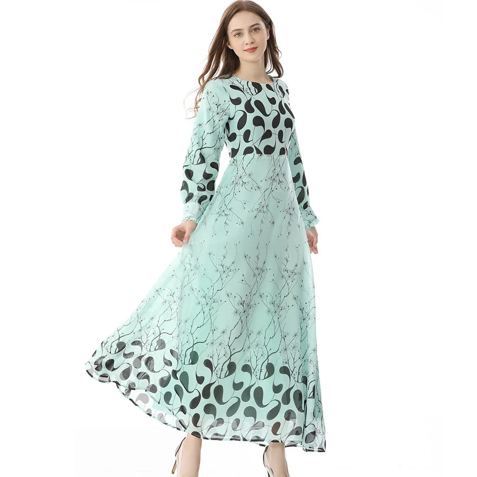 Женское платье с длинным рукавом, свободное мусульманское платье с модным принтом, приталенное мусульманское длинное платье, 2021