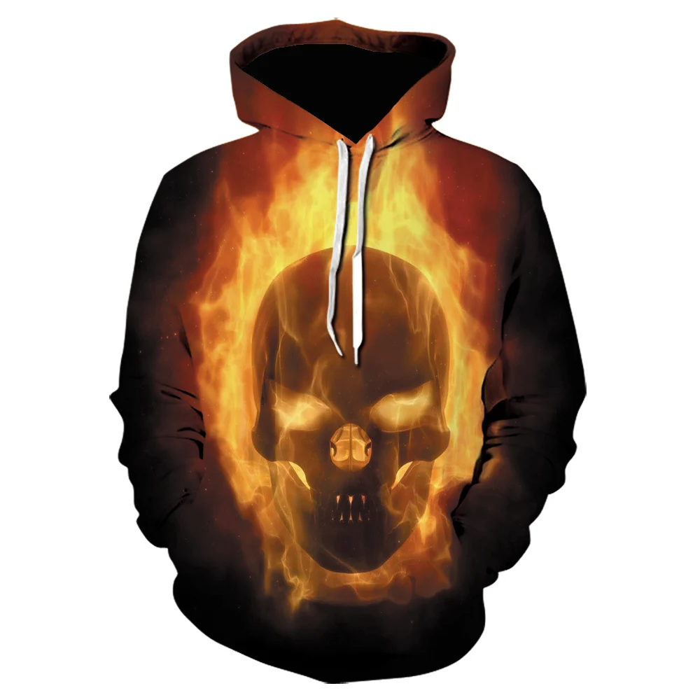 Новинка 2021, мужские толстовки с рисунком огня и черепа, толстовка в стиле ужасов с 3d принтом, черный пуловер для осени, Повседневная Толстовка в стиле Харадзюку, пальто