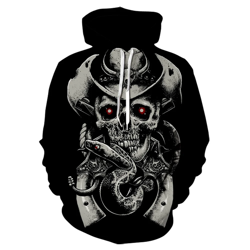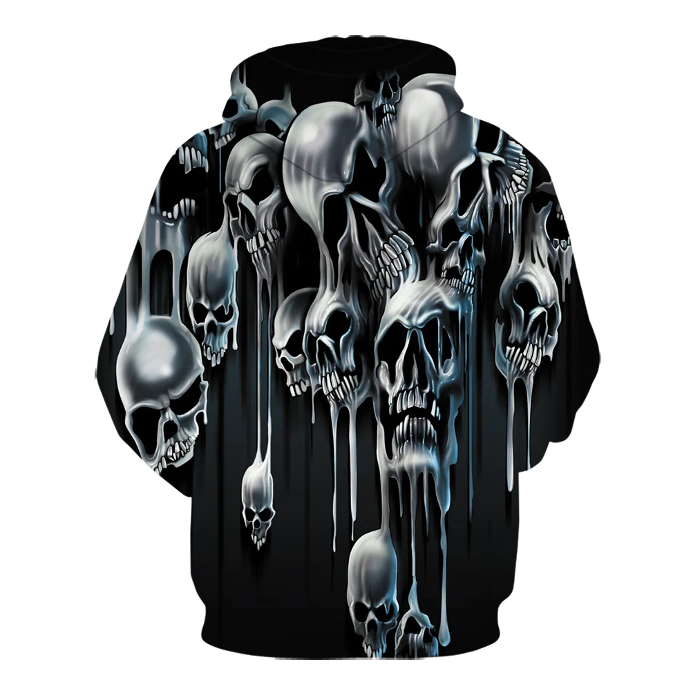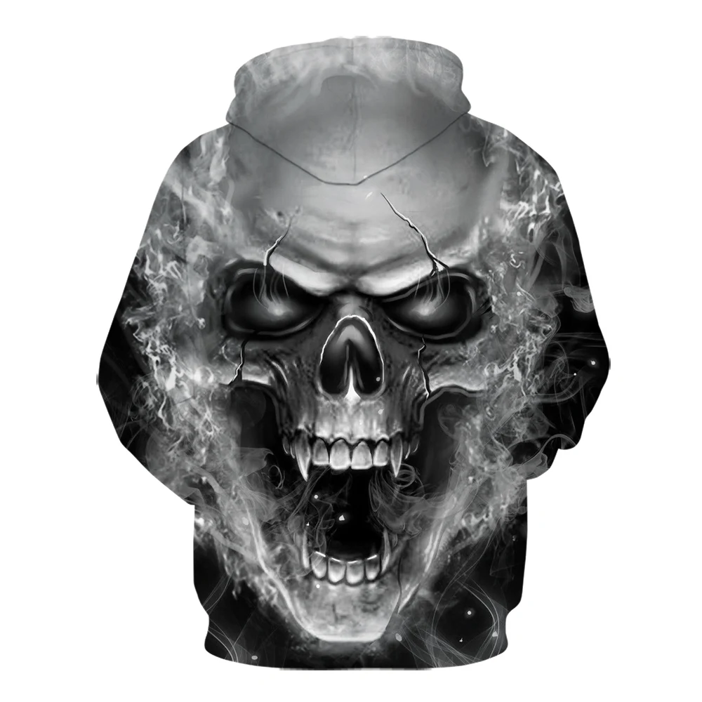 Мужская толстовка с капюшоном и 3D-принтом черепа, в стиле хип-хоп