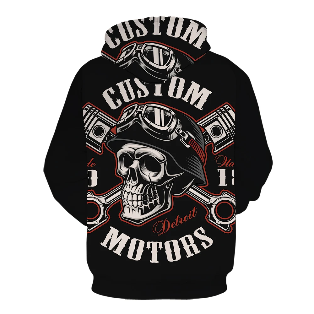Мужская толстовка с капюшоном и принтом черепа, с длинным рукавом