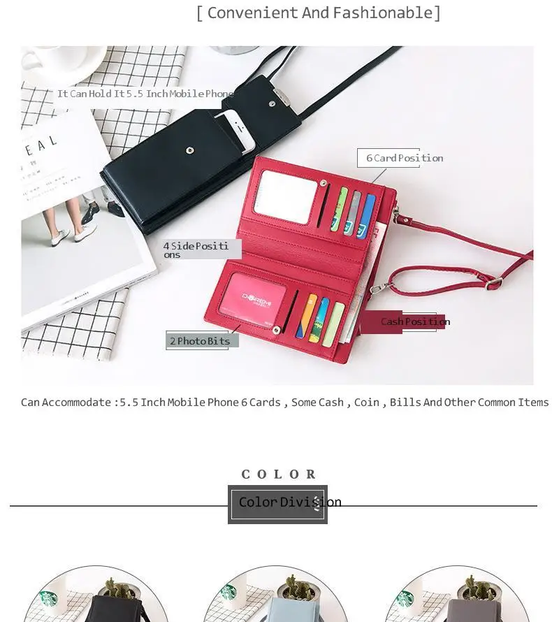 Женский кошелек-мессенджер, Дамский бумажник с несколькими кармашками для карт, длинный модный держатель для мобильного телефона, кредитных карт