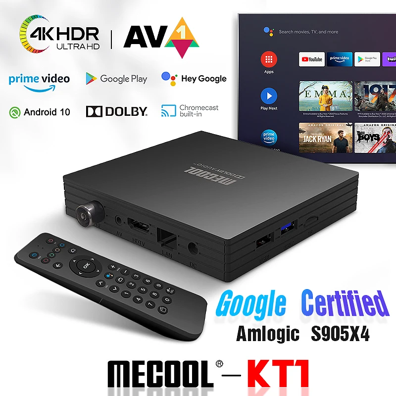 Приставка Смарт-ТВ MECOOL KT1 Amlogic S905X4, Android 10,0, 2 + 16 ГБ, 4K HDR, AV1