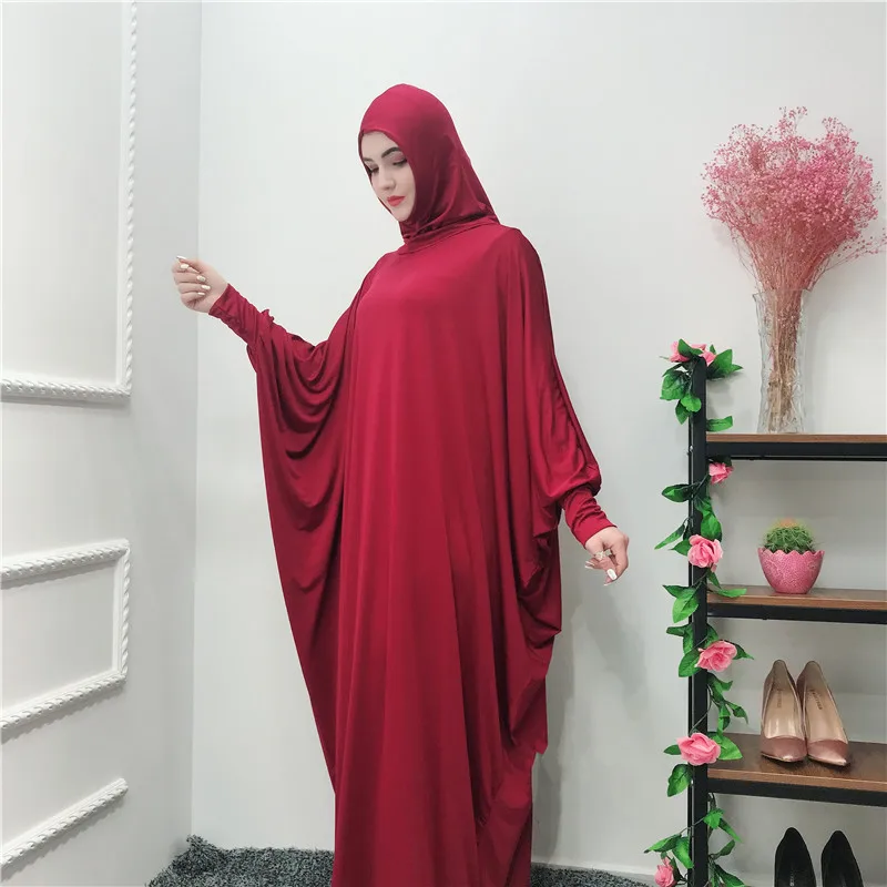 Мусульманские Женские однотонные головные уборы с рукавами «летучая мышь», халаты, кардиган, платье для Рамадана