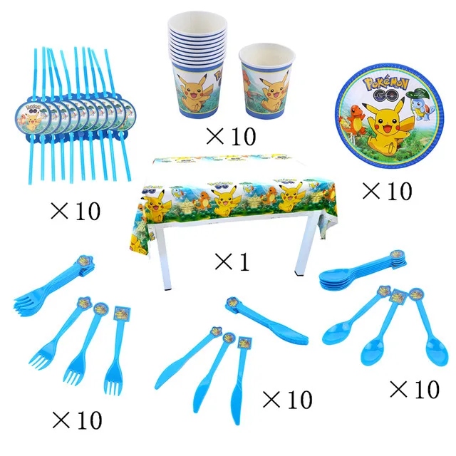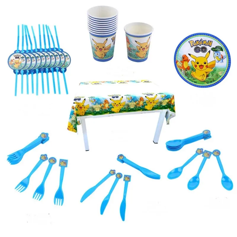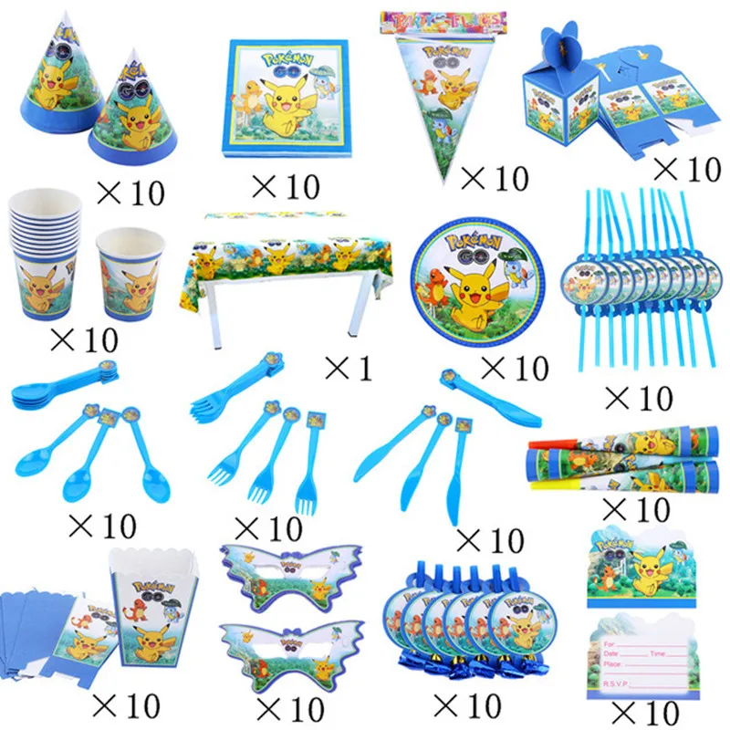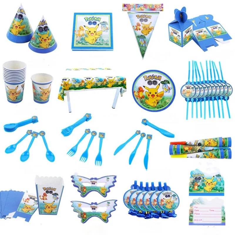 16 стилей, Покемон, день рождения, одноразовые украшения, набор посуды для вечеринки, бумажные чашки, тарелки, товары для дня рождения