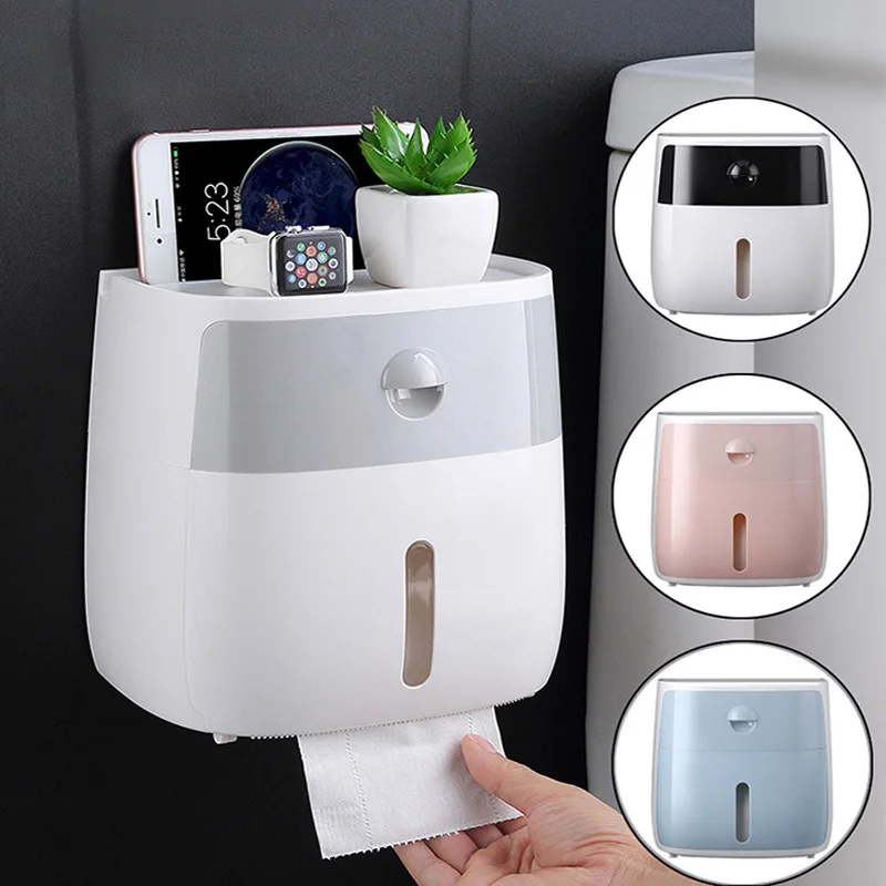 Бытовой держатель туалетной бумаги водонепроницаемый настенный ящик для хранения для ванной комнаты с полкой пластиковая коробка для салфеток WC рулон бумаги держатель