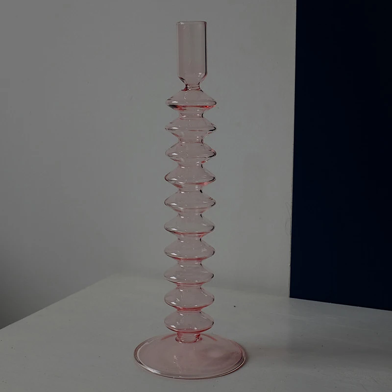 Прозрачный стеклянный розовый подсвечник, 1 шт., столб или конусный...