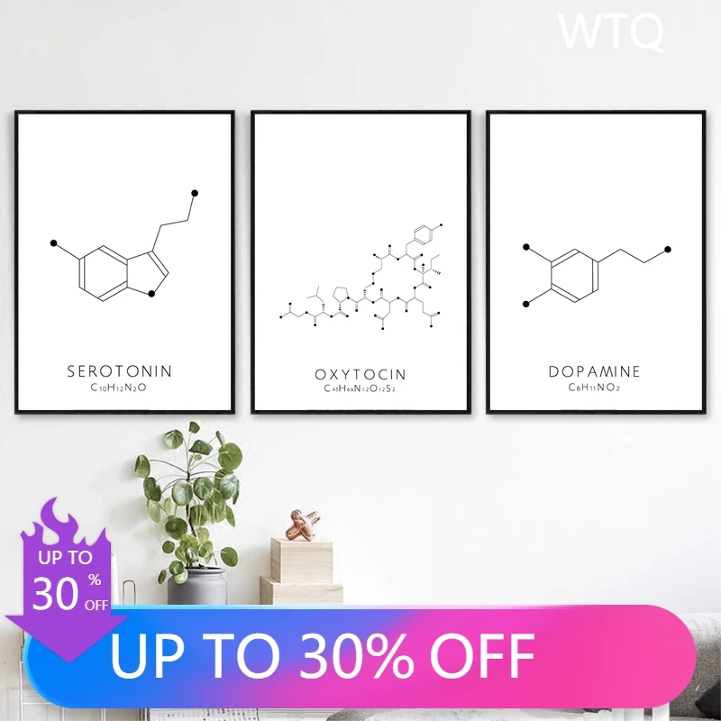 Школьная лаборатория настенное Искусство Холст плакат печать окситоцин допамин живопись молекулярная структура картина химия наука декор комнаты