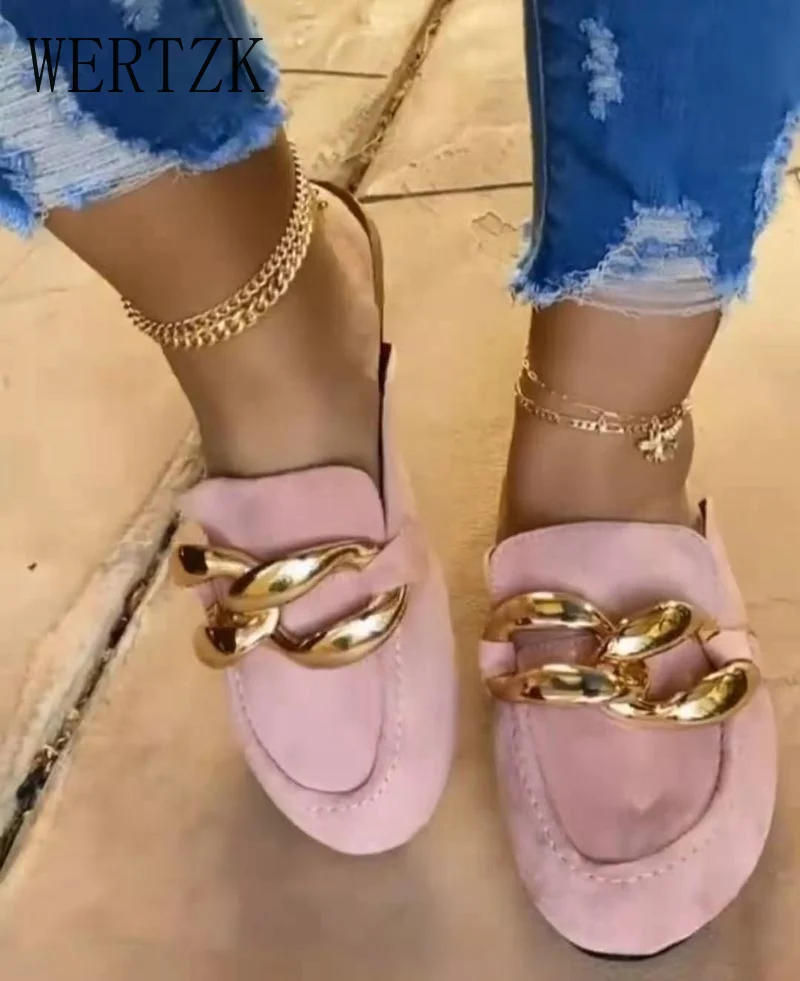 Шлепанцы женские кожаные, повседневные сандалии с металлической цепочкой, плоская подошва, для улицы и банкета, роскошные универсальные, весна-лето 2021