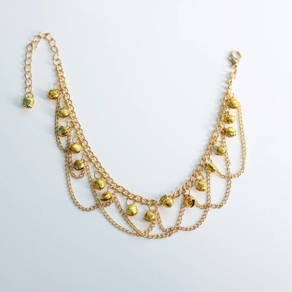 Браслет-цепочка Женский, многослойный, золотой колокольчик, кисточка