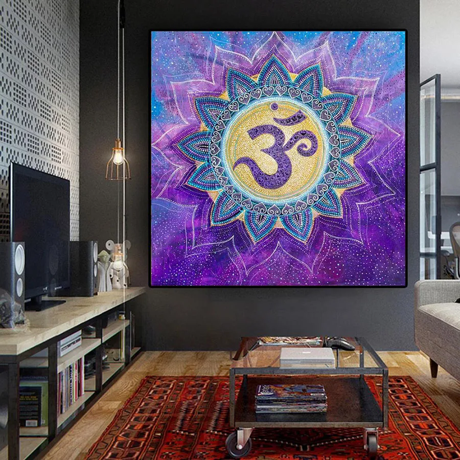 Алмазная живопись 5d Yoga с полным заполнением, с символом Ом, мандала, для рукоделия, бриллиантовая вышивка, вышивка крестиком для индуизма