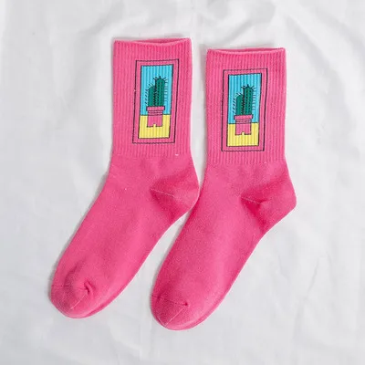 Носки женские, хлопковые, с изображением кактуса, 5 парыЛот, весна ...