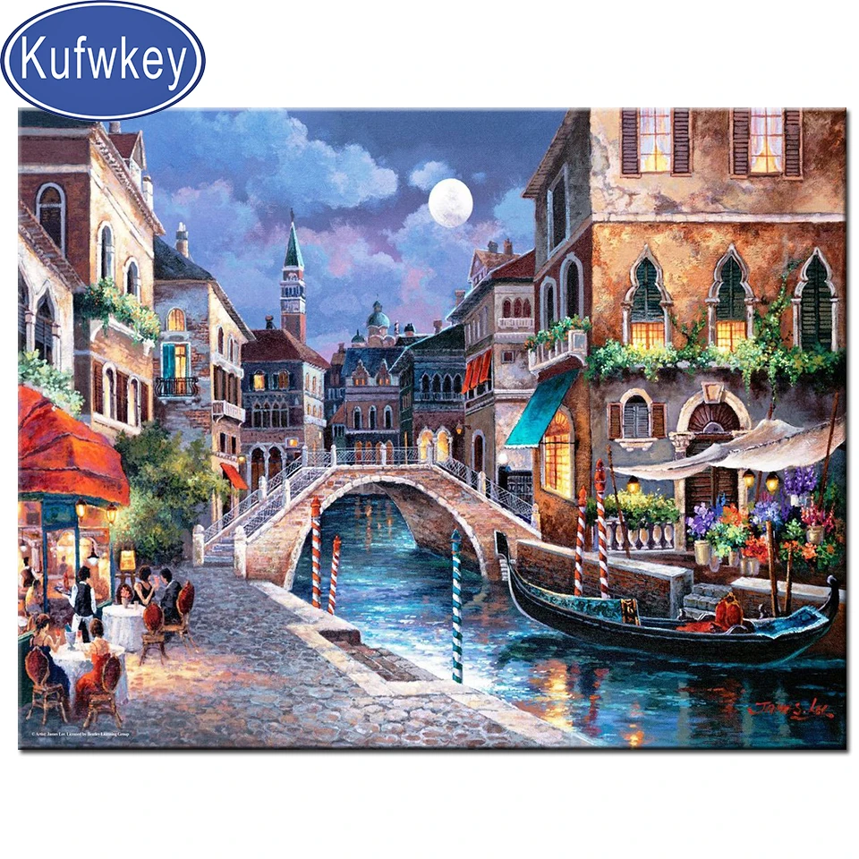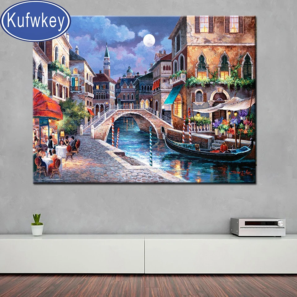 Алмазная живопись, вода, город Италии, красота, квадратная Алмазная...