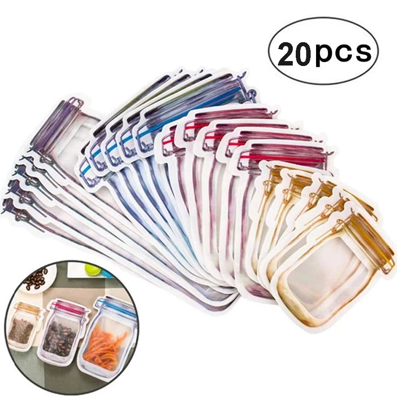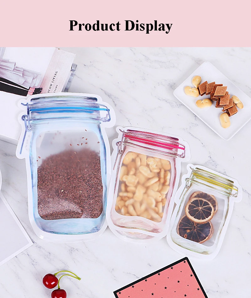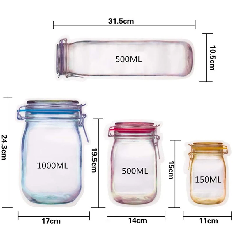 Стеклянная банка с завинчивающейся крышкой бутылок сумки многоразовые орехов конфет Печенье сумка для хранения Еда Кухня Органайзер свежий загерметизированные мешки герметичные Домашний Органайзер