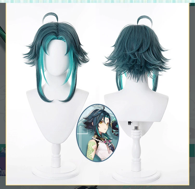 Защитная маска Genshin Impact для косплея Xiao, светящаяся маска для косплея Genshin Impact XIAO, 25 см, парик Xiao для косплея, темно-зеленые короткие волосы