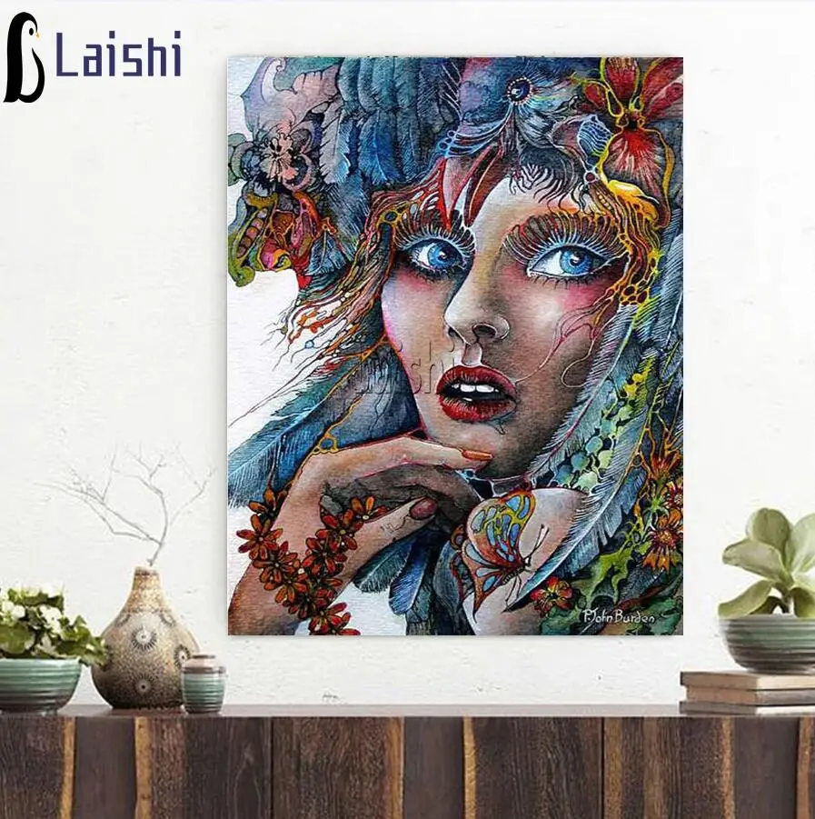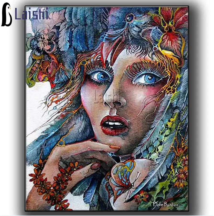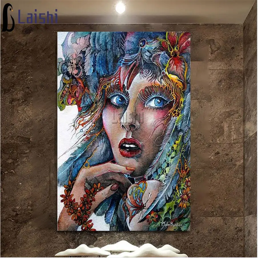 Набор для алмазной вышивки сделай сам, круглые квадратные абстрактные перья, индейцы, женщина, цветок, узор бабочки, наборы для вышивки крестиком, домашний декор