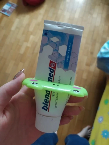 Получили 4 жабки, симпатичные, веселые. Только их функцию выполнения не совсем понятно- продели тюбик зубной пасты и всё- жабка просто висит на тюбике. Выдавливать она не выдавливает. Но ней можно просто по тюбику проводить пасту к выходу)