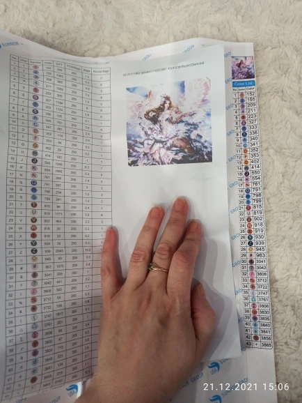 Алмазная живопись сделай сам, покрытая белыми перьями и светлым реб...