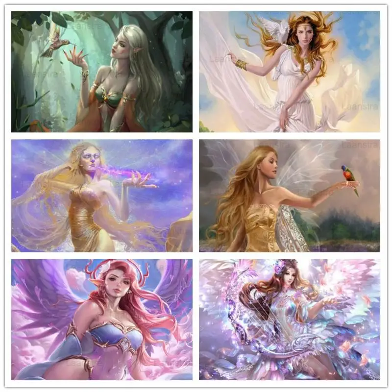 Полноразмерная квадратнаякруглая 5D алмазная живопись сделай сам, фантазия, красота, девушка, фея, девушка, узор для вышивки крестиком, набор для мозаики, домашний декор