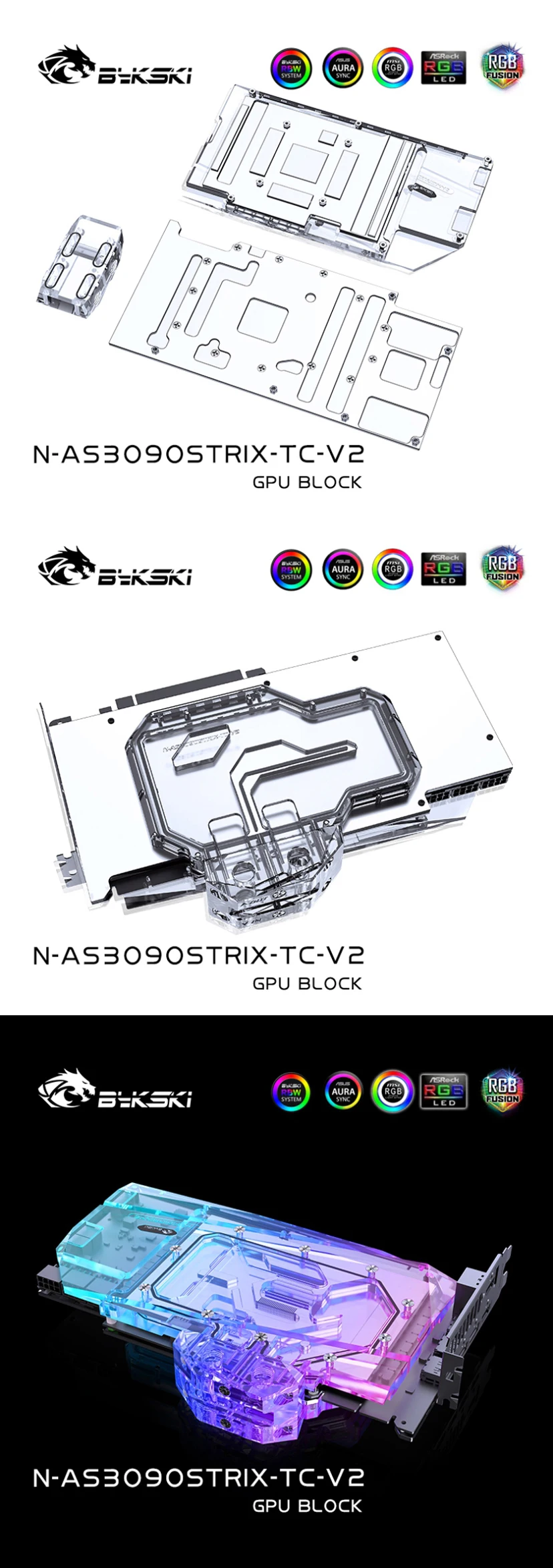Bykski N-AS3090STRIX-TC-V2 GPU Блок водяного охлаждения с двойной а...